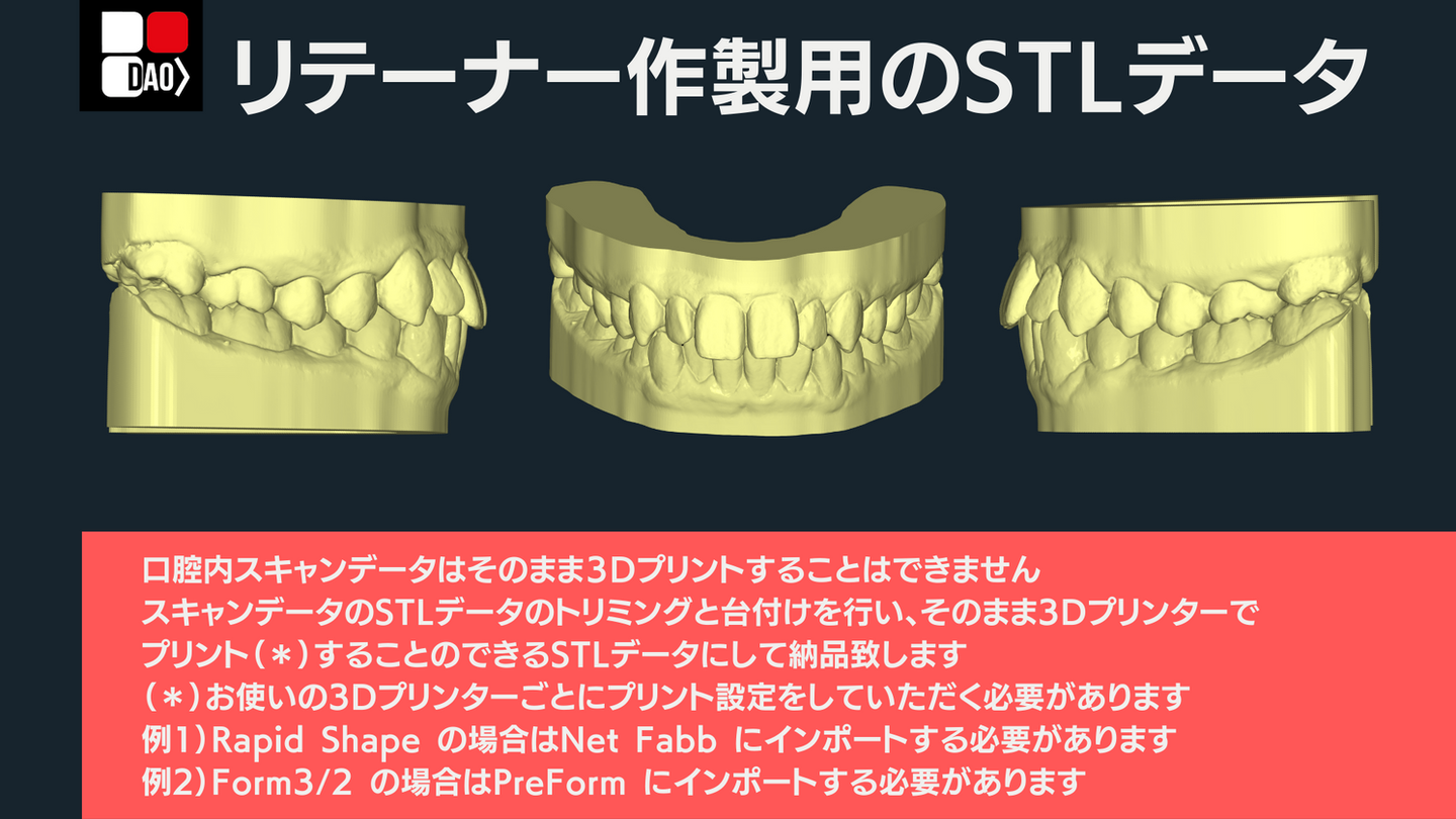 DAO Planning Centerは、アライナー矯正治療の診断に必要なデータを納品します。